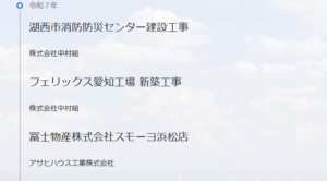 レガシーとも言える、歴史に刻む建築物を共に造りましょう。 Recruitment私達と一緒に働きませんか 人材募集 弊社は大手のゼネコンと取引がメインのため小笠山総合運動公園のエコパスタジアムや古橋記念水泳場など県内を代表するような主要な建造物の鉄筋を組んでいます。 静岡県内のレガシーとも言える、歴史を刻む建築物を共に造りましょう。 人材募集の詳細はこちら Corporate Info田中鉄筋はこんな会社です! 会社概要 当社(株式会社田中鉄筋)は昭和42年10月に鉄筋工事業として創業されました。 「決めたことは守る」をモットーにお取引先様との信頼関係を強固なものとし、今日に至るまで堅実に成長させて頂きました。 田中鉄筋の会社プロフィールはこちら What’s New新着情報 サイト更新施工事例に令和7年の情報を追加しました!2026年2月10日サイト更新新社屋完成のお知らせ!2026年1月31日サイト更新施工事例に令和6年の情報を追加しました!2025年2月10日サイト更新施工事例に令和5年の情報を追加しました!2023年9月21日サイト更新施工事例に令和3年、令和4年の情報を追加しました!2023年2月10日サイト更新ホームページを開設しました!2020年12月8日